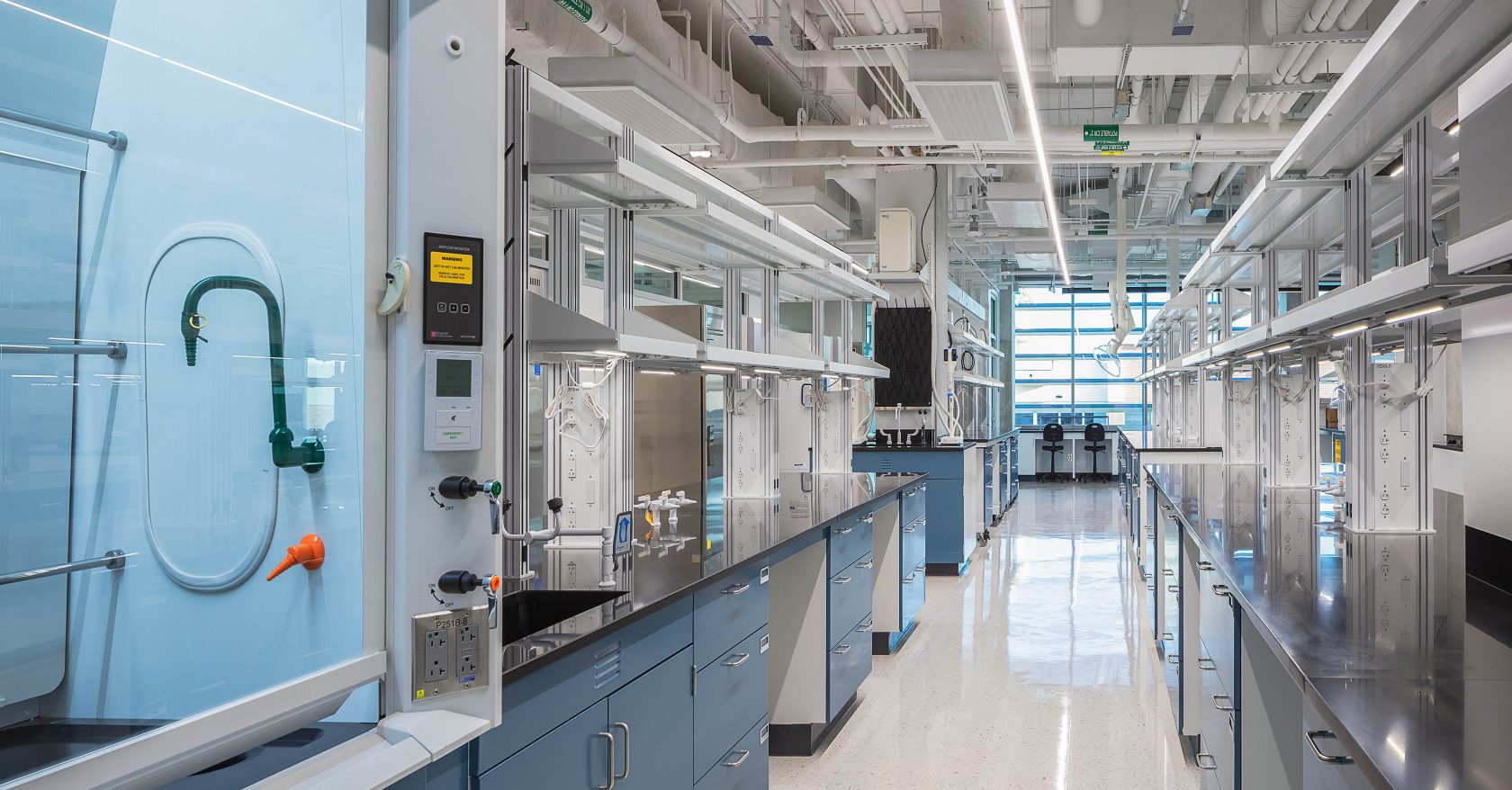 This critical research and teaching facility houses specialized laboratories in the areas of biotechnology, tissue culture, microscopy, additive manufacturing, fabrication, computer science, and robotics. The labs are replete with compressed area and carbon dioxide gas systems along with central vacuum.